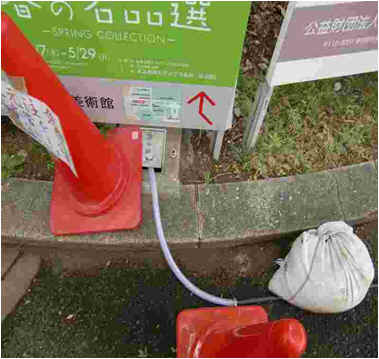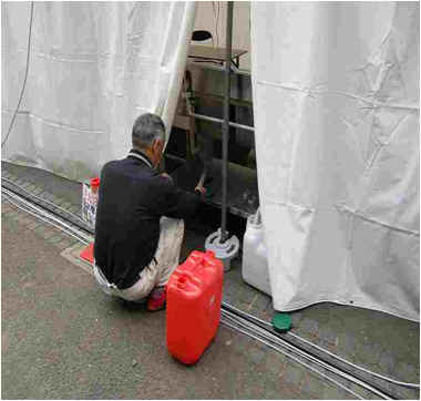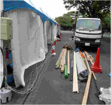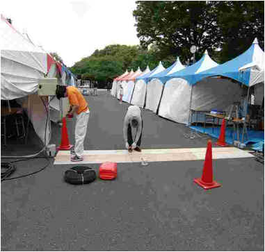 イベント終了後の夜間に設備の撤去を行い、その後清掃します 翌朝に地面や排水溝の汚れを高圧洗浄機で洗い流します