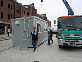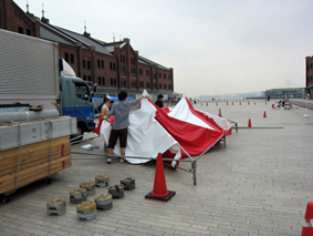 さすがにこの大きさになると、設営にもクレーンを使用して大掛かりなものになります