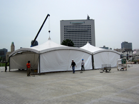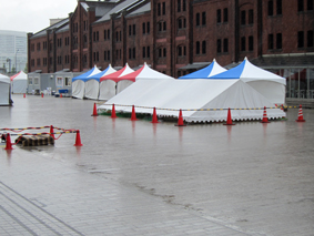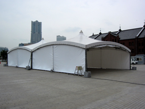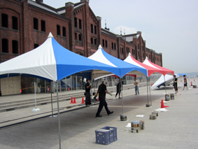 今回は赤レンガ倉庫内が会場として使用できないため、画像のような大型テントを2張り用意しました