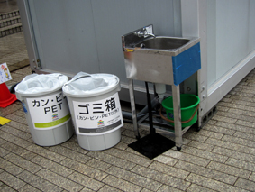 ハウスの横に手洗い場とゴミ箱を設置