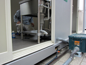 排水口の掃除です これを怠ると汚れや匂いの原因となり、会場側にも迷惑を掛けることとなってしまいます