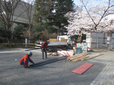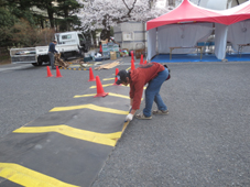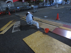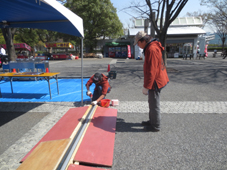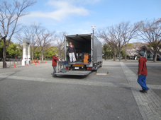 搬入車だけではなく来場者の方々も通るところなので、危険の無いような作りを心がけています