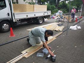 配管の保護と来場者や出店者の安全には代えられません