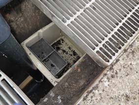 側溝内にはトラップを使いゴミや油を直接流さないようにしています