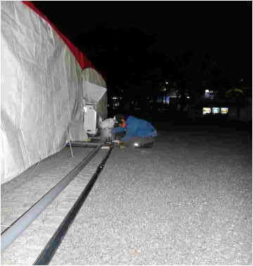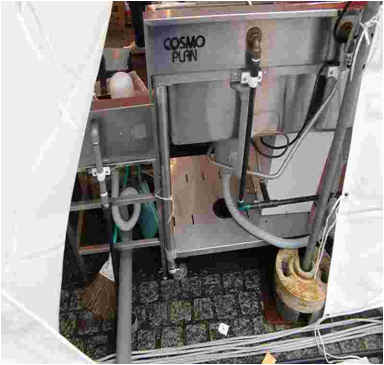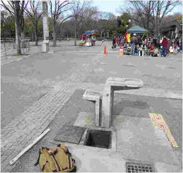 設営前に現地の水道メーターの位置や排水溝のサイズ等、事前に確認します
