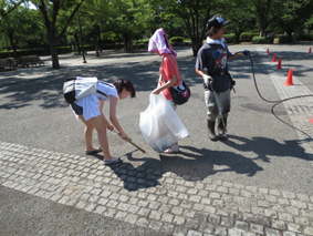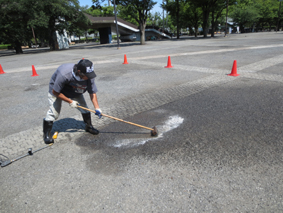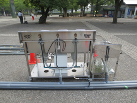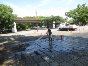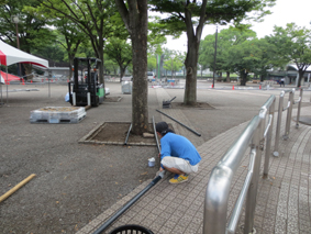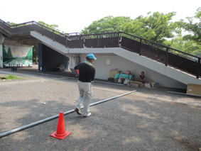 撤収翌日に高圧洗浄器を使用して会場となった広場をイベントでの油等の汚れを洗います