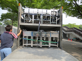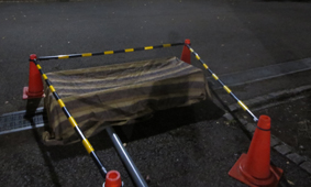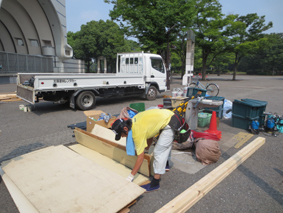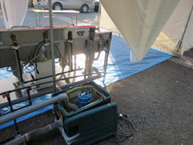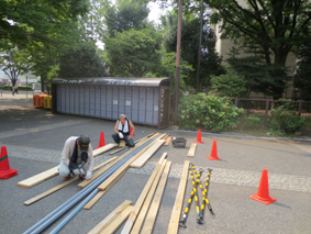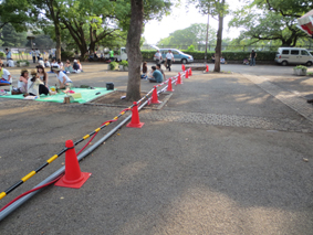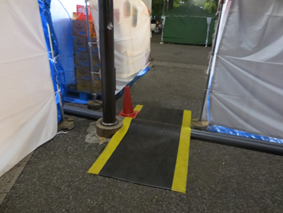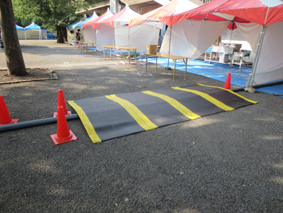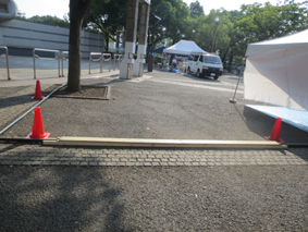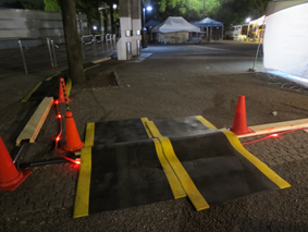 この作業はイベント毎に現場あわせで製作するので手間は掛かりますが、搬入車の横断による配管の破損や来場者の安全を考慮しなければなりませんので、決して手抜きはできない部分でもあります