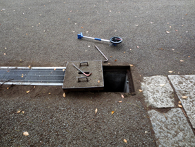 まずは現地調査です 排水枡の状況確認等