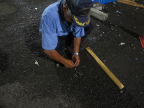 イベント終了後の撤収作業です 今回はイベント終了時間がPM20:00と遅いため、撤収作業終了も深夜に及びましたが、撤収作業に伴う細かいゴミやビス等も可能な限り拾います